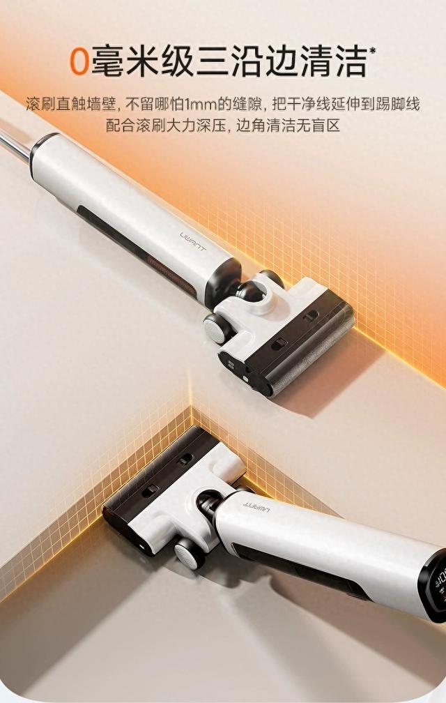 3侧0mm的超贴边设计是清理边角的关键——传统洗地机因机身宽度限制,墙角、家具边缘常留清洁盲区,而云朵2.0的贴边设计能直接贴合墙面,连踢脚线缝隙里的积灰都能轻松吸净。针对家庭常见的毛发缠绕问题,它采用"大吸力+双排悬浮恒压鲨齿+175°广角大吸口"三重防缠绕技术:大吸力直接将毛发吸入污水箱,双排鲨齿实时切割长毛发,广角吸口扩大覆盖范围,从根源上避免滚刷被毛发"打结"。
