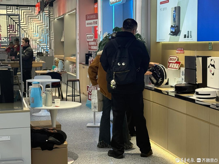 2月5日中午,济南泉城路京东电器城市旗舰店的清洁电器专区,即便不是周末,客流仍络绎不绝。各大智能清洁品牌的展台前,不时有市民驻足体验,销售人员忙着演示产品功能、讲解优惠政策。